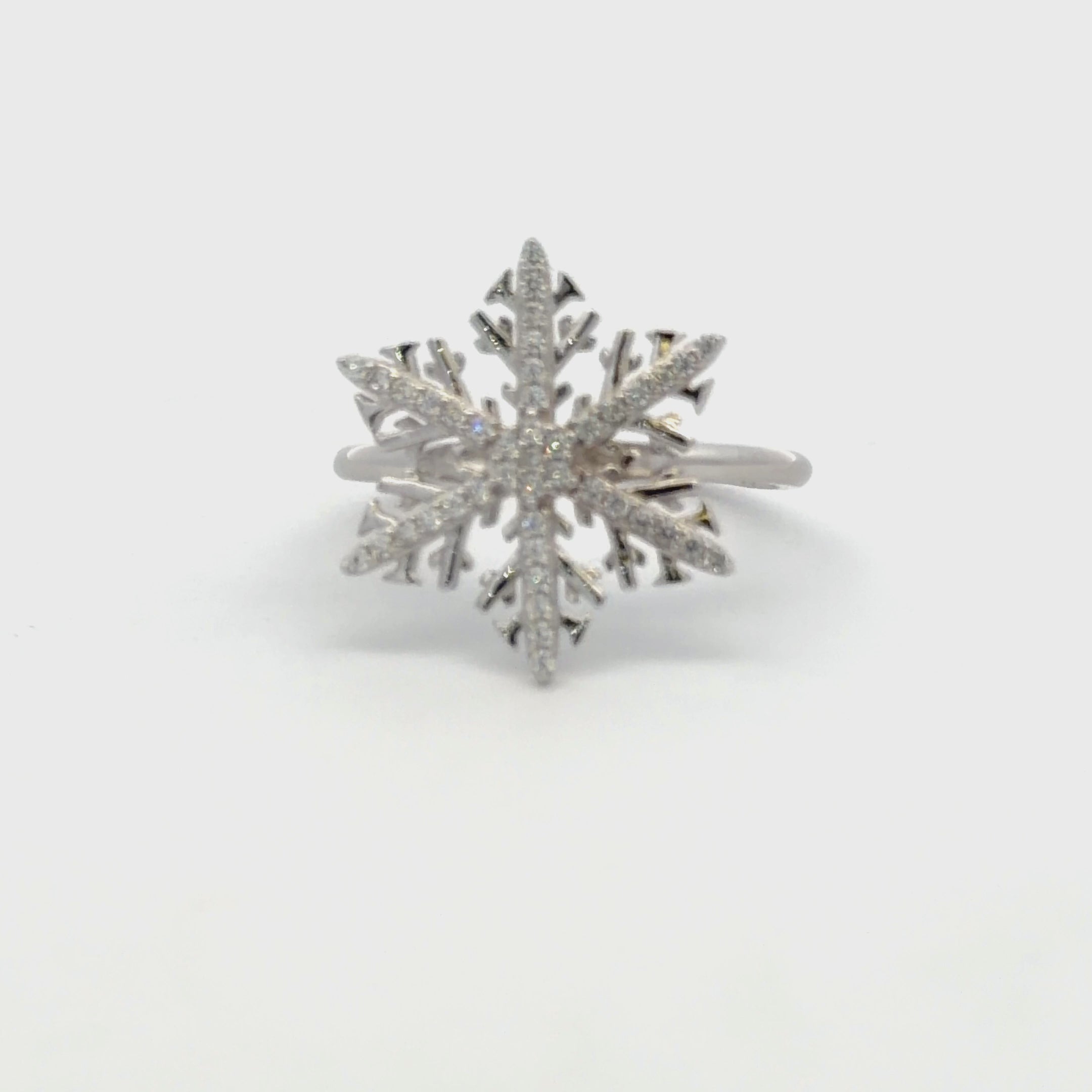 Welcome winter with our whimsical holiday snowflake ring, Crystal. It features 100% simulated diamond material (AAA CZ) stones on each of the 6 arms, adding sparkle to your whole look. It is about 3/4" in size.